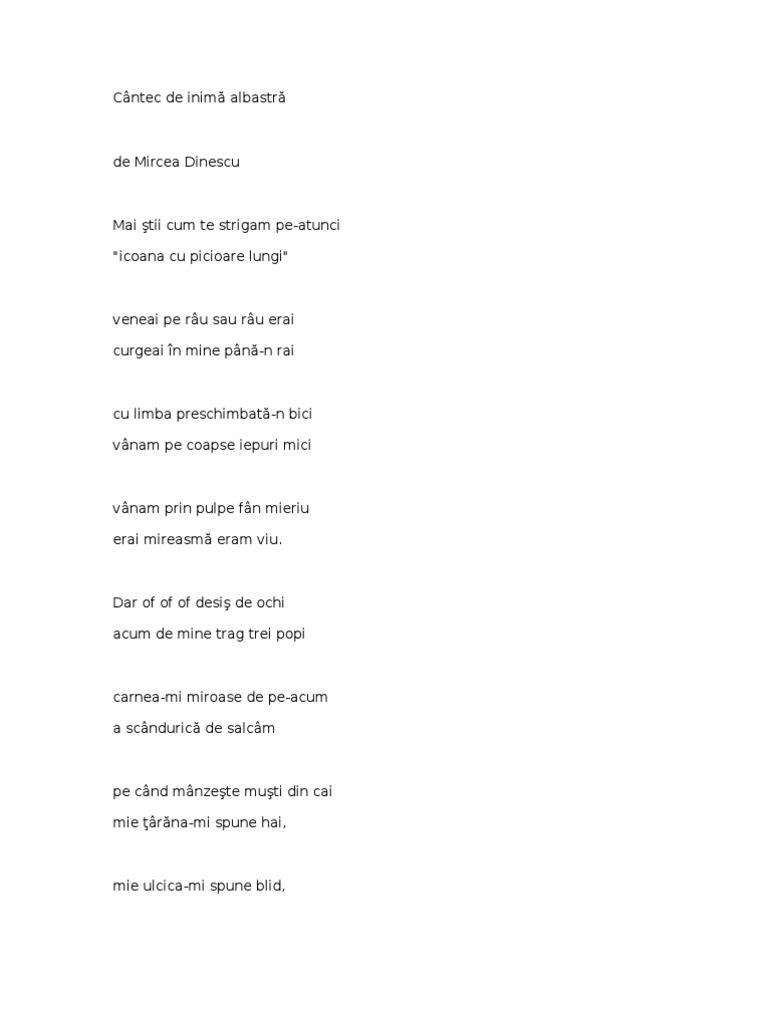 Cantec De Inima Albastra Mircea Dinescu