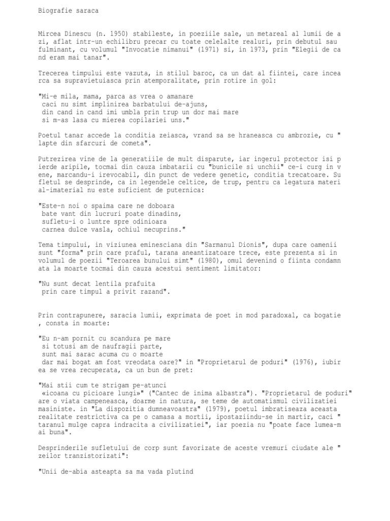 Dinescu Biografie Saraca