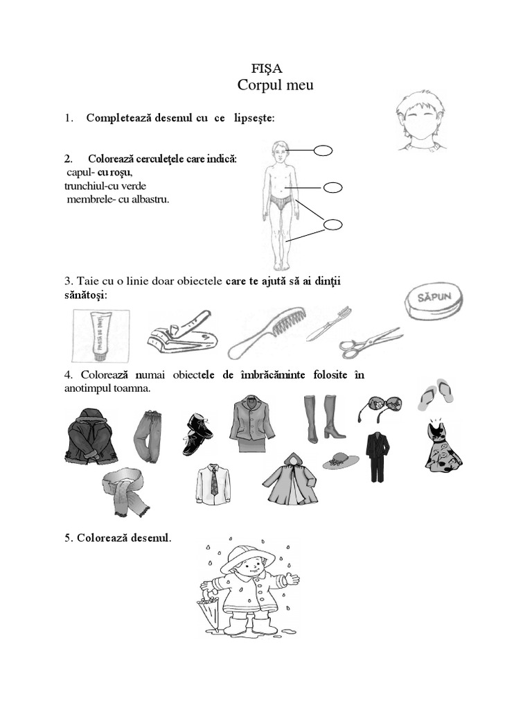 Fise De Lucru Gradinita Corpul Uman Obiecte De Ingrijire Personala Fise De Lucru Pentru Copiii Din Scola Si Gradinita
