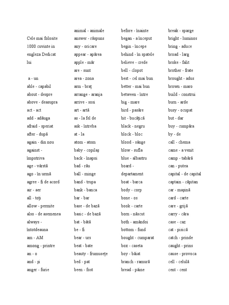 Cele Mai Folosite 1000 Cuvinte In Engleza Dedicat Lui