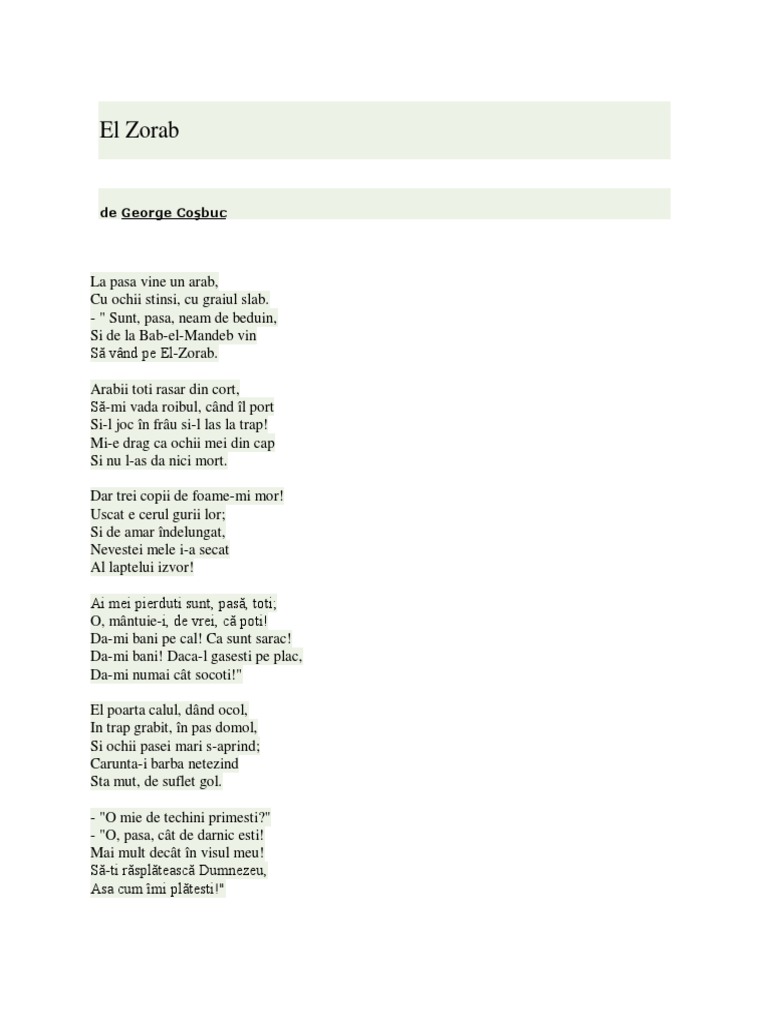 El Zorab De George Cosbuc Anideșcoală Ro