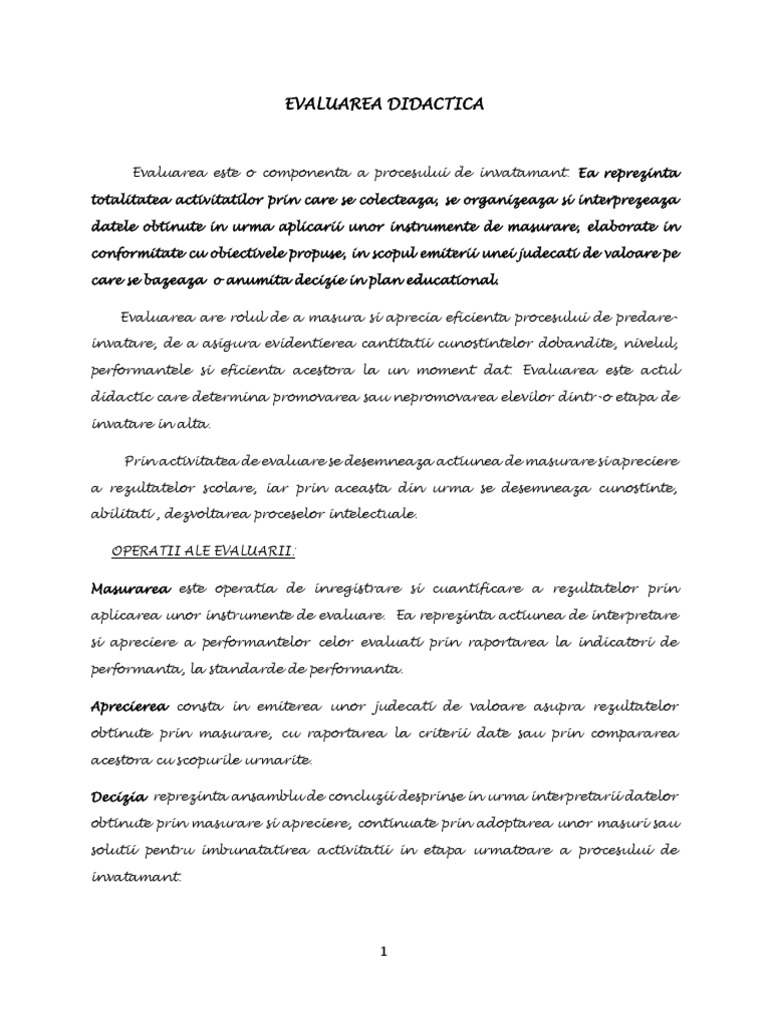 Evaluarea In Procesul De Invăţămant 1 Definirea Conceptului De Evaluare Operaţiile Evaluării