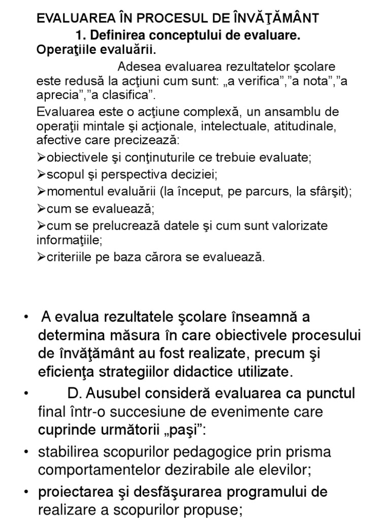 Ppt Evaluarea In Procesul De Invăţămant 1 Definirea Conceptului De Evaluare Operaţiile Evaluării Powerpoint Presentation Id 5236506