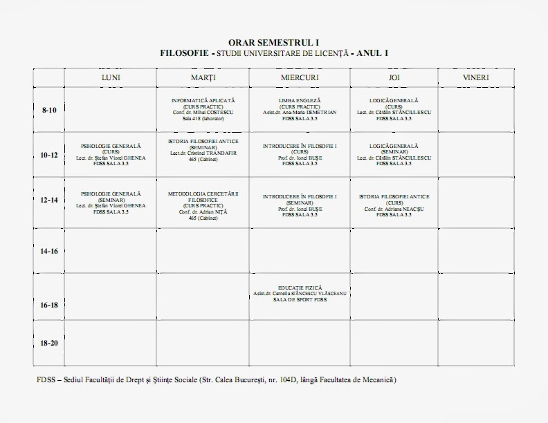 Filosofie Ucv Orare Licenta Master 2013 2014