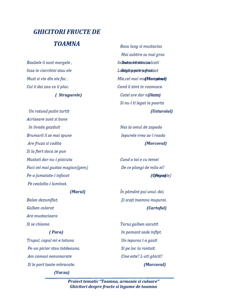 Ghicitori Despre Fructele și Legumele Toamnei Anideșcoală Ro