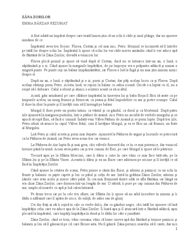 4 Zana Zorilor Rezumat Emma Barzan