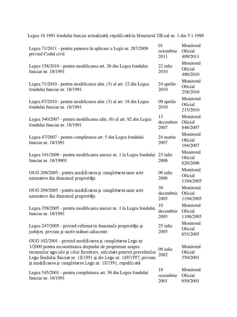 Modificări Aduse Legii Fondului Funciar Nr 18 1991 Taxnews