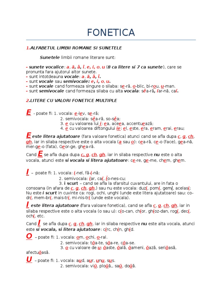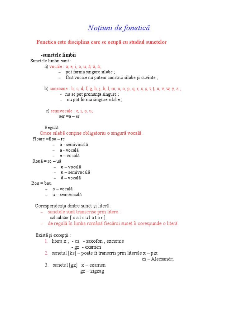 Notiuni De Fonetica Limba Romana