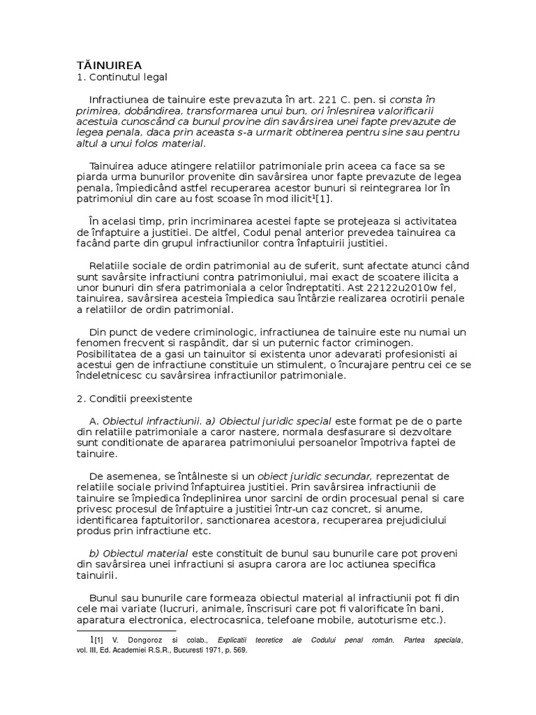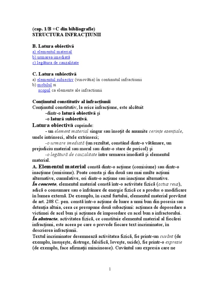 A I 1 B C Latura Obiectiva Si Latura Subiectiva A Infractiunii