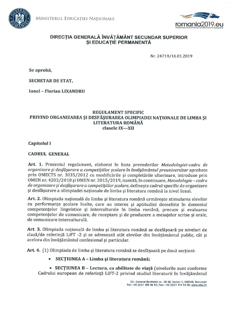 Regulament Olimpiada De Limba Si Literatura Romana