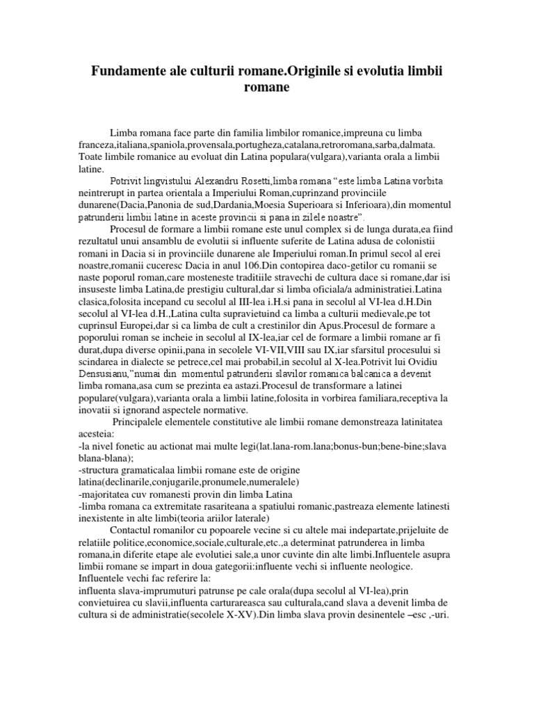 Referat Referat Originea Si Evolutia Limbii Romane 296335 Graduo