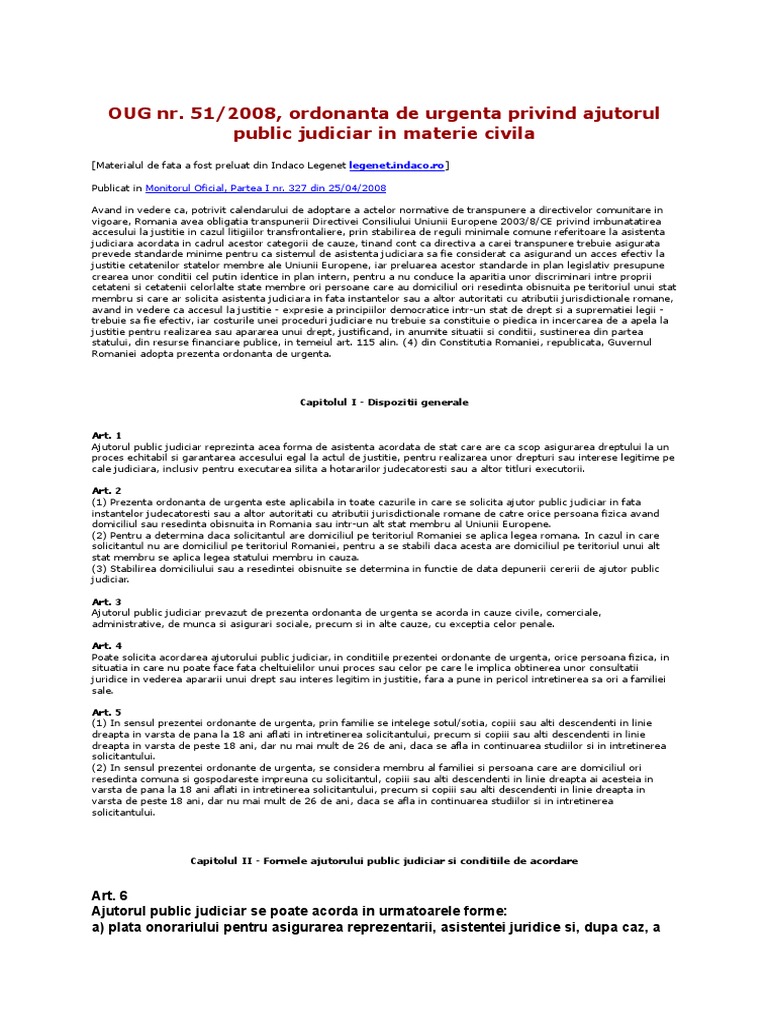 Oug Nr 51 2008 Ordonanta De Urgenta Privind Ajutorul Public Judiciar In Materie Civila
