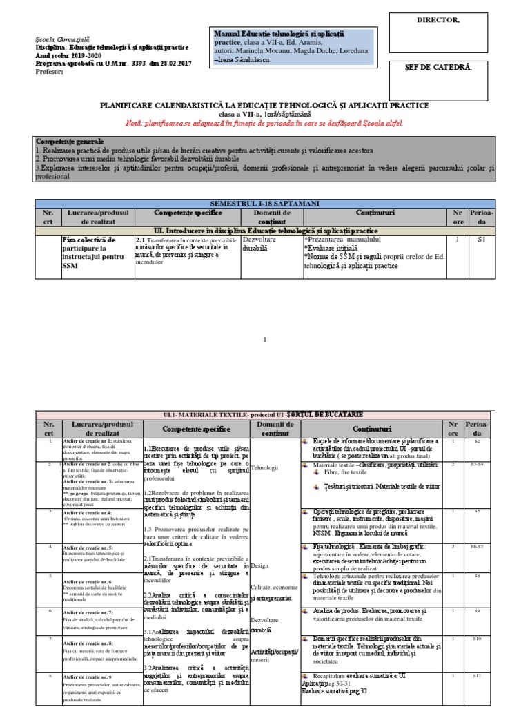 Doc Disciplina Educatie Tehnologica Planificare Calendaristica Clasa A Vi A Semestrul I Modulul I Economia Familiei Ionut Ionutu Academia Edu