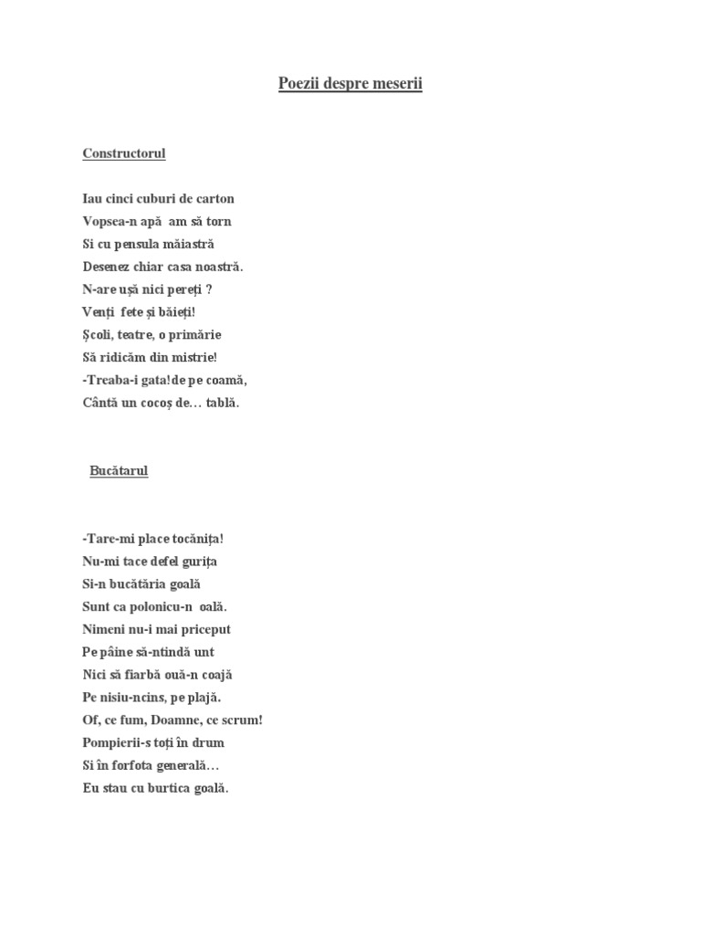 Poezii Despre Meserii