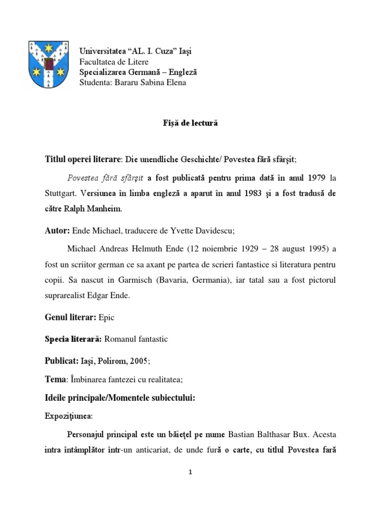 Caut Rezumat La Povestea Fara Sfarsit De Michael Ende Pe Capitole Va Rog Brainly Ro