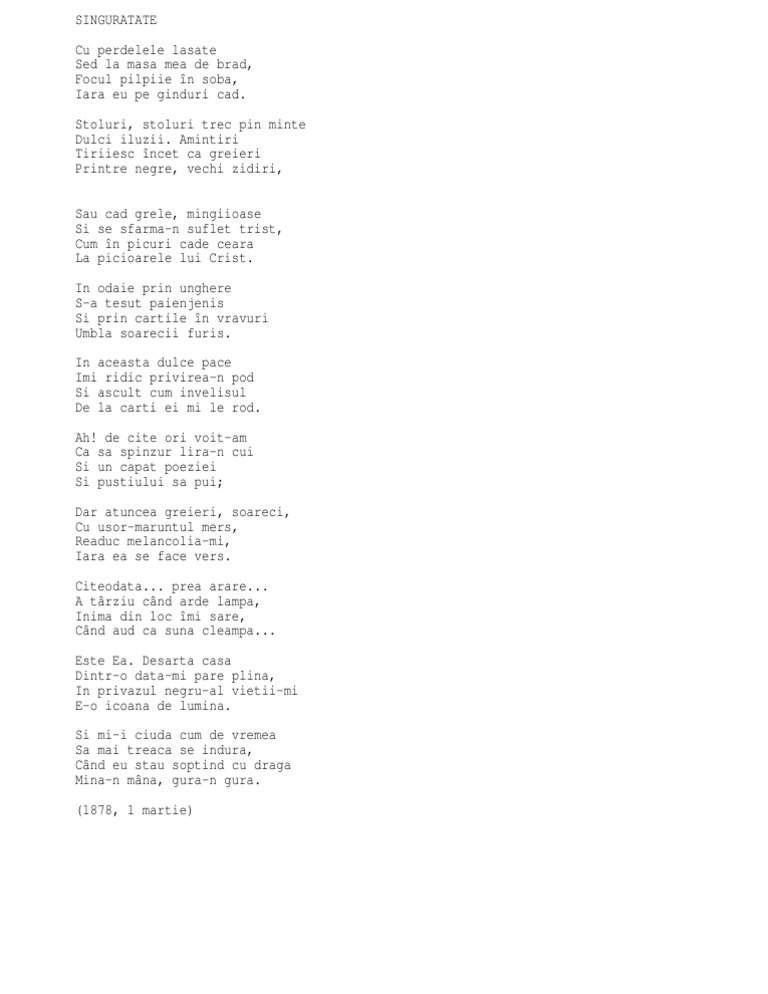 Comentariul Poeziei Singuratate De Mihai Eminescu Pdf