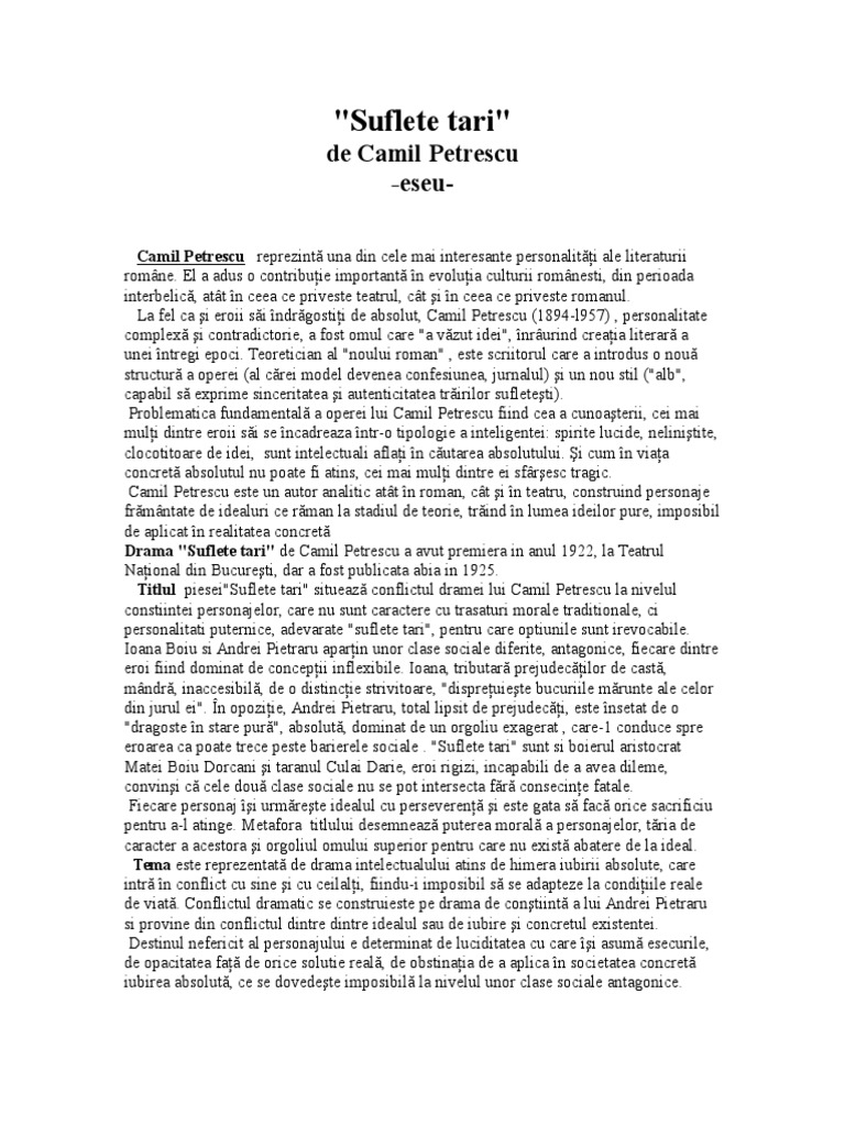 Referat Suflete Tari De Camil Petrescu Famouswhy Ro