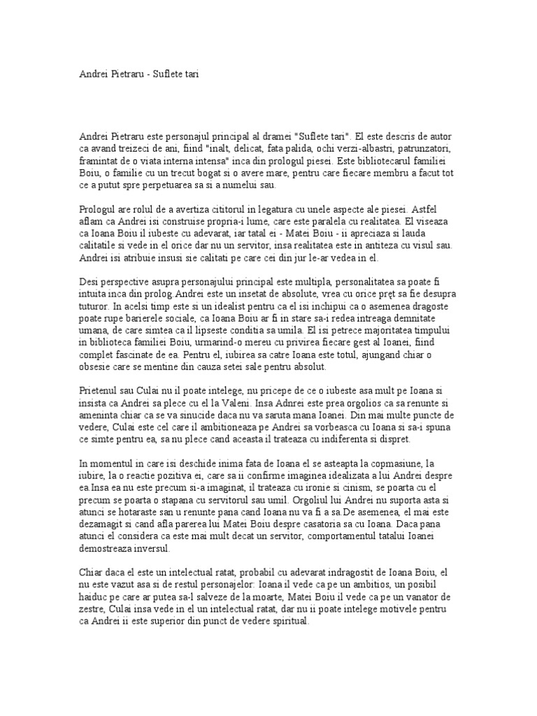Caracterizarea Lui Andrei Pietraru Suflete Tari