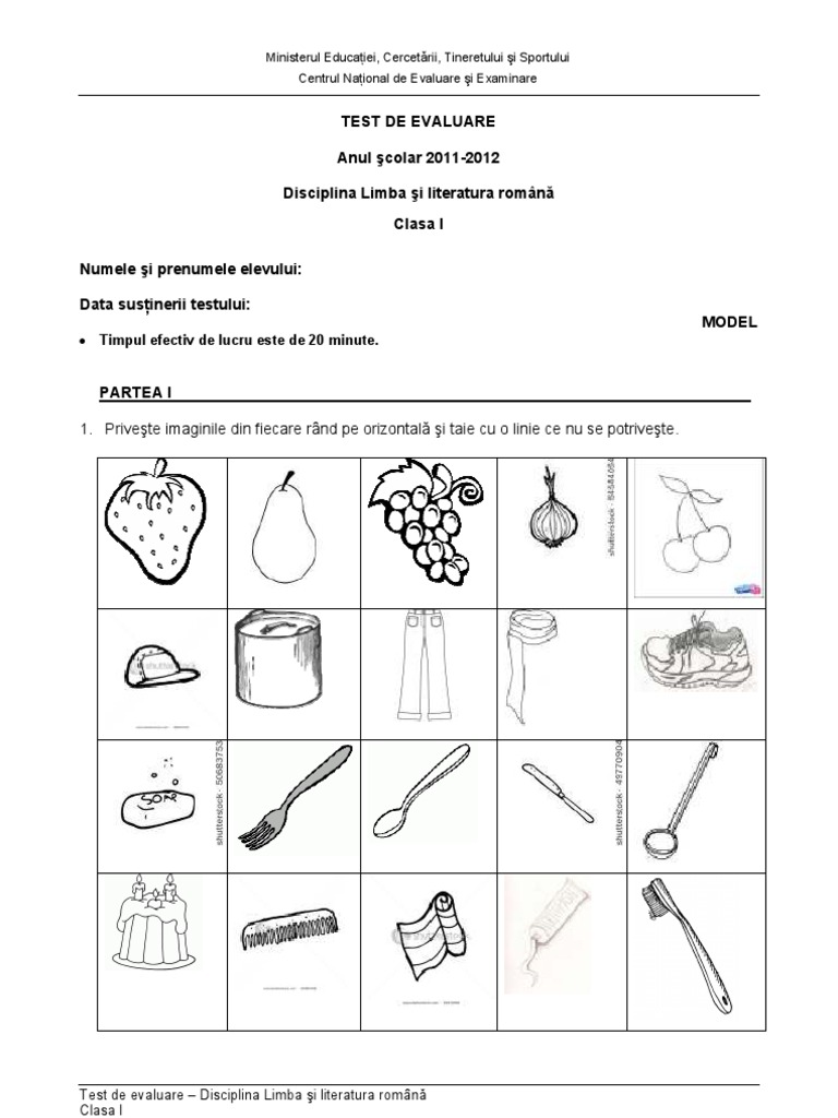 Evaluare Initiala Limba Romana Cls I Test