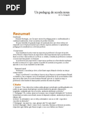 Un Pedagog De Scoala Noua De Ion Luca Caragiale